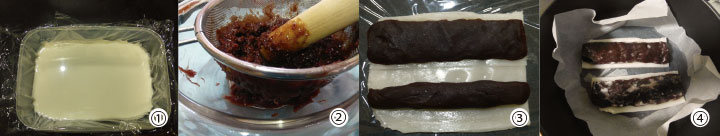 - To make the bean paste: push the canned azuki beans through a sieve, then microwave without covering for 6 minutes. Stir, then test with a spatula to see if mixture forms peaks. If so, it is done. If too soft, cook for a further 1 minute and check again. Put in a container and cover surface tightly with plastic wrap (photo 2).