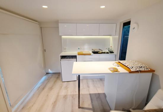 Glen Irisの居心地の良いガーデン・バンガロー 26m²のガーデン・バンガロー(スタジオタイプ)は、メルボルン滞在に快適です。ダ イニングスペース、家具、簡易キッチン付きで、自炊もできます。安全な環境で静か な一人暮らしをしたい方にぴったりです。手ぶらで入居可能です。(Available from 7 October 2025).