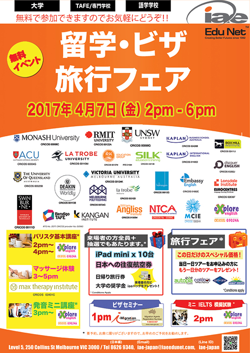 4/7(金)留学フェアでお申し込み頂くと、スペシャル特典がついてきます☆