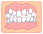 歯の大きさや数に対して、顎の大きさが小さい場合です。歯が生えるスペースが十分になく横に生え、でこぼこになります。軟らかいものばかり食べて育つと、顎が発達せずにこの状態になりやすくなります。
